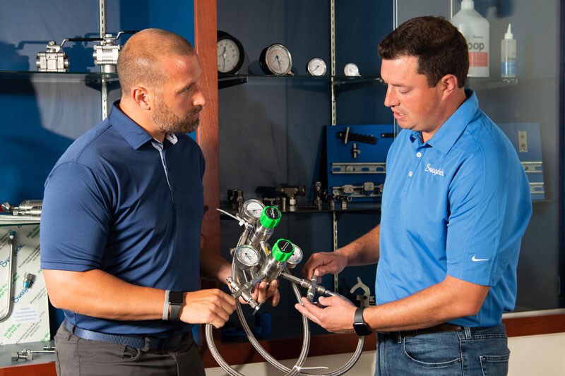 Proven Application ExpertsLet us help you choose the optimum Swagelok componentry or fabricated assembly for your particular application – no matter how complex or routine your job. Our trained and friendly Technical Sales and Support Team provides reliable recommendations on how you can confidently and quickly reduce operational downtime and other major system inefficiencies. Whatever your fluid-system challenge, we have the technical know-how and always-on-hand inventory to enable you to get more done safely: on-time, on-plan, and on-budget!  |